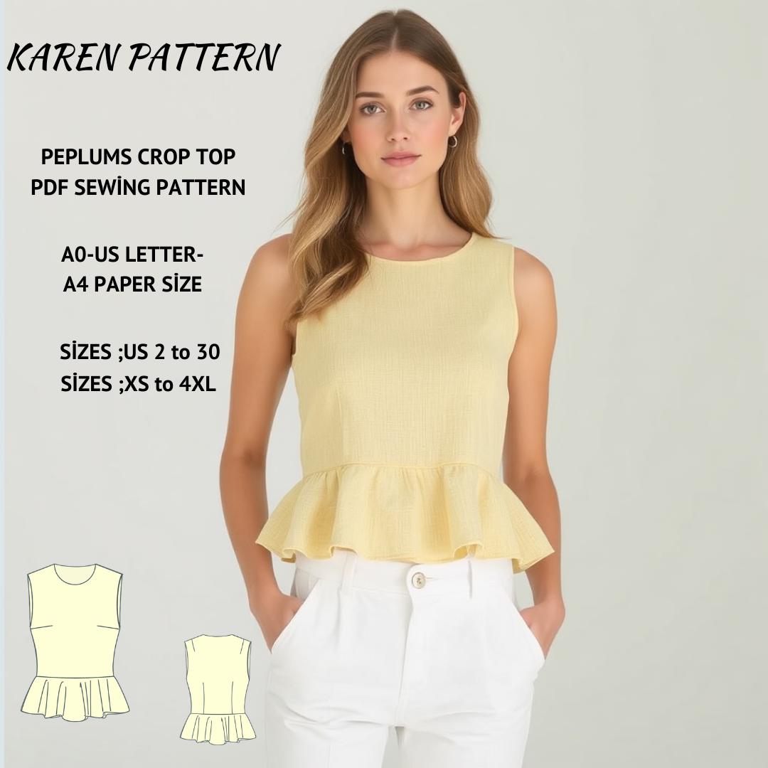 🌟Peplum Ruffle Top Sewing Pattern,Women Top Pattern,Ruffled Top,Crop Top,Easy Knitwear Top,Crop Baby Tee: