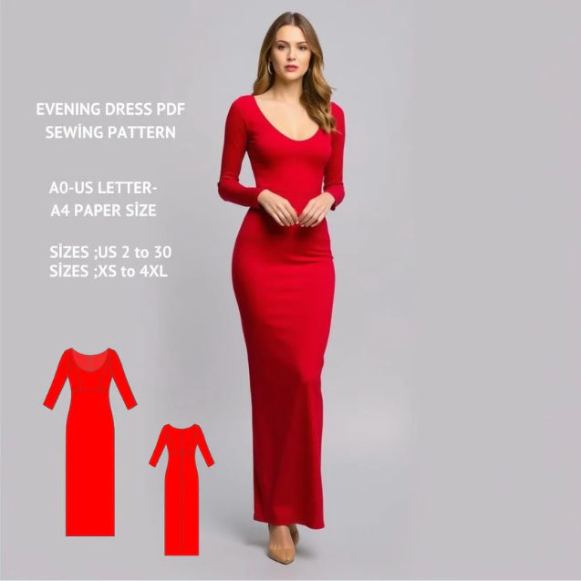 Velvet Bodycon Maxi Dress Sewing Pattern: Evening Prom Gown (PDF Pattern)