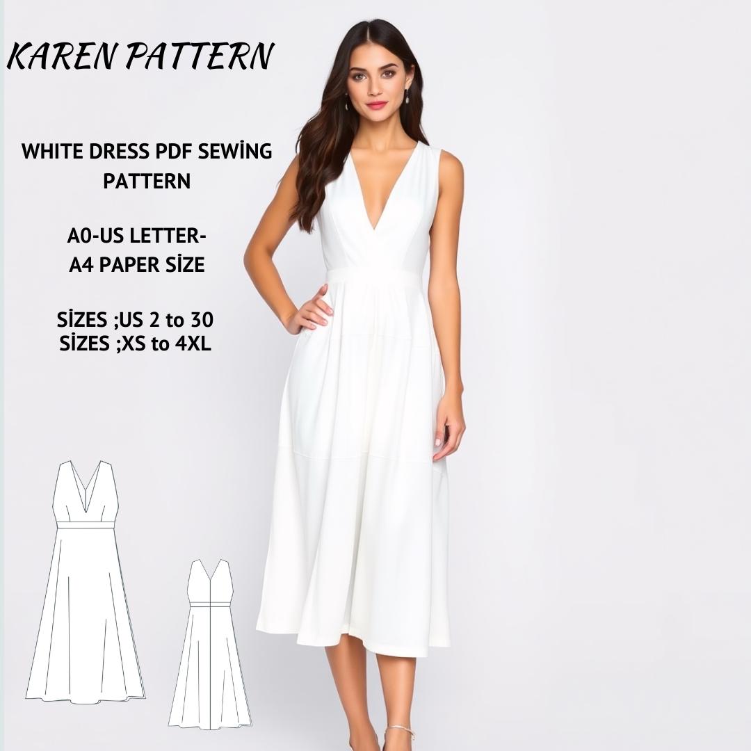 White Midi Dress Sewing Model,Elopement Midi Dress ,Wedding Dress Model,Minimalist Dress Model,Prom Dress Sewing Pattern,