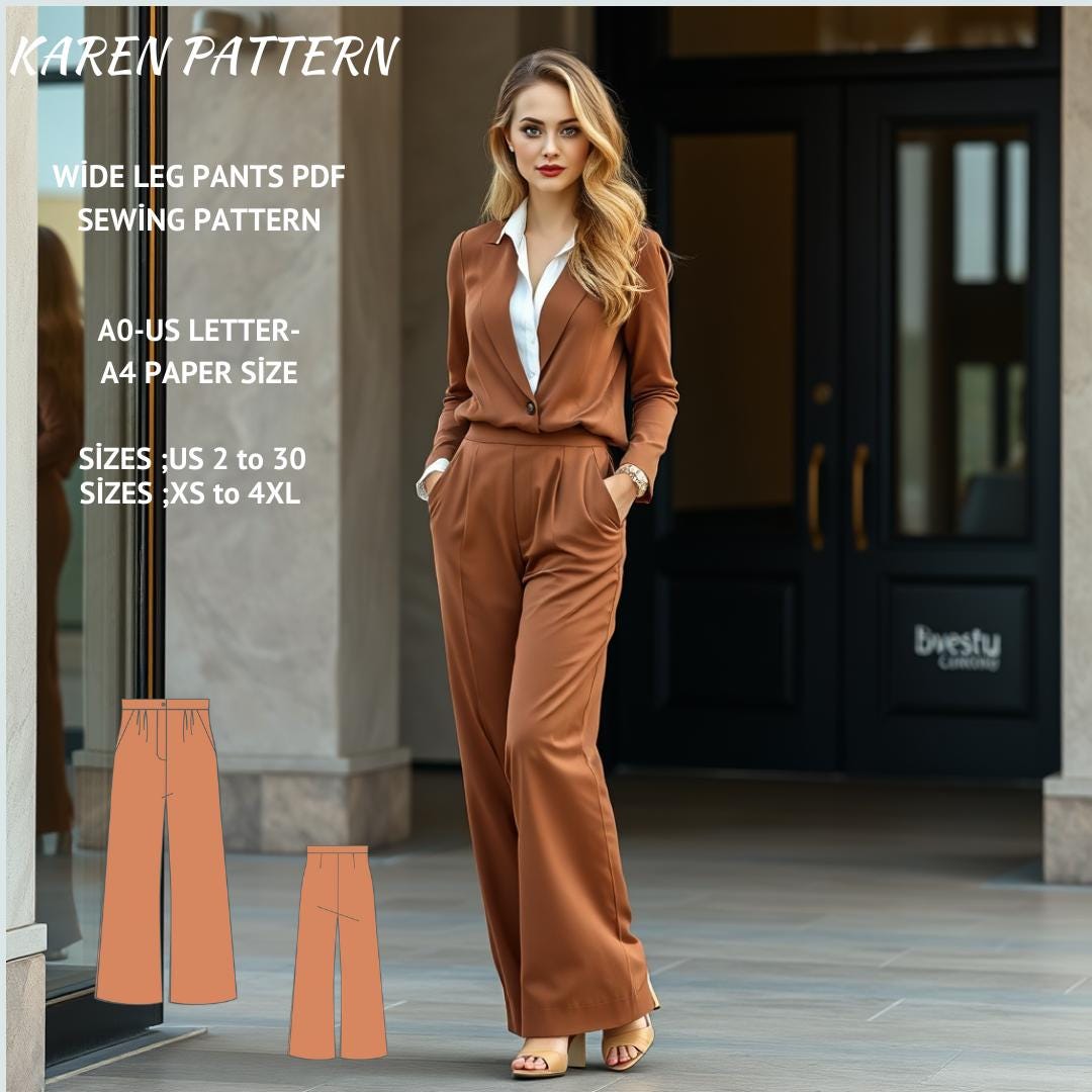 Wide Leg Pleated Trousers Sewing Pattern:US Size 2-30 (PDF Pattern)