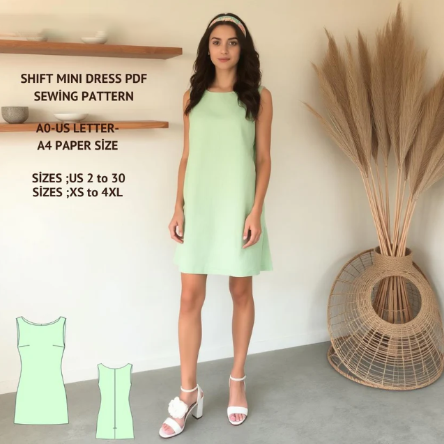 A-Line Shift Dress Sewing Pattern:Beginner Summer Cotton (XS-4XL) (Digital Download)