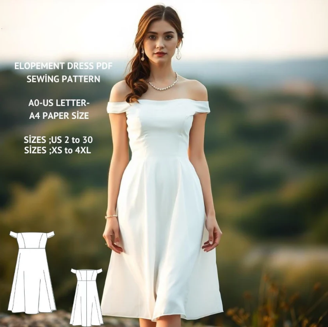 Elopement Dress Sewing Pattern,White Below Knees Dress Pattern,Wedding Dress Pattern, Minimalist Dress Pattern, Prom Dress Sewing Pattern,