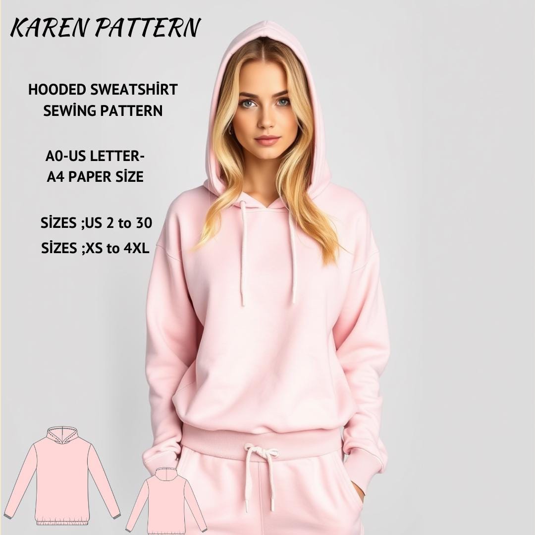 Hooded Sweatshirt Sewing Pattern:Women's Sweatsuit (US2-30) (Digital Download)