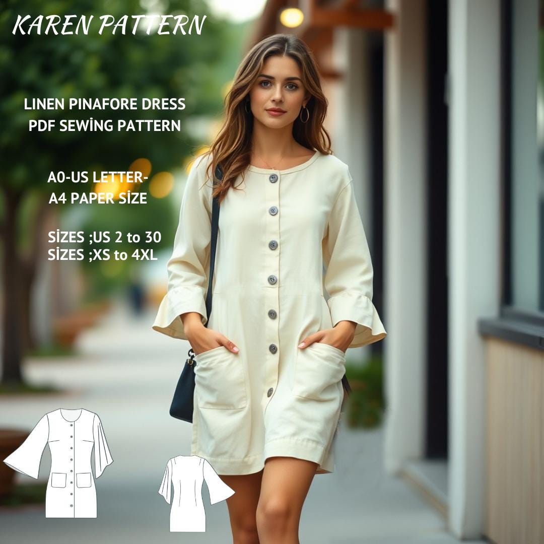 Linen Pinafore Dress Sewing Pattern, A4-US Letter A0 XS/4XL (Digital Download)