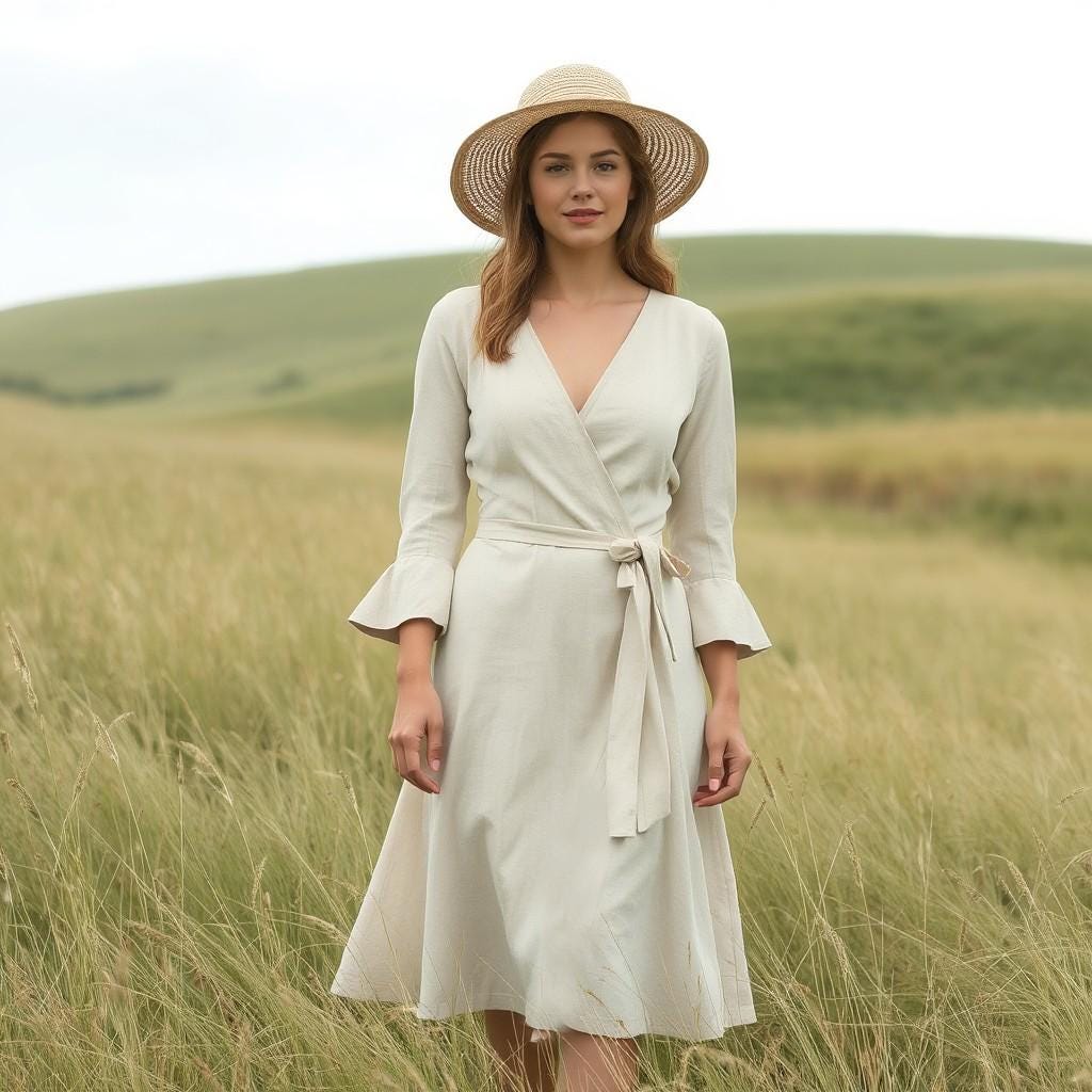 Cottagecore Linen Wrap Dress sewing pattern,Surplice Dress is available as an instant download (pdf) sewing pattern pack in a variety of sizes including plus sizes