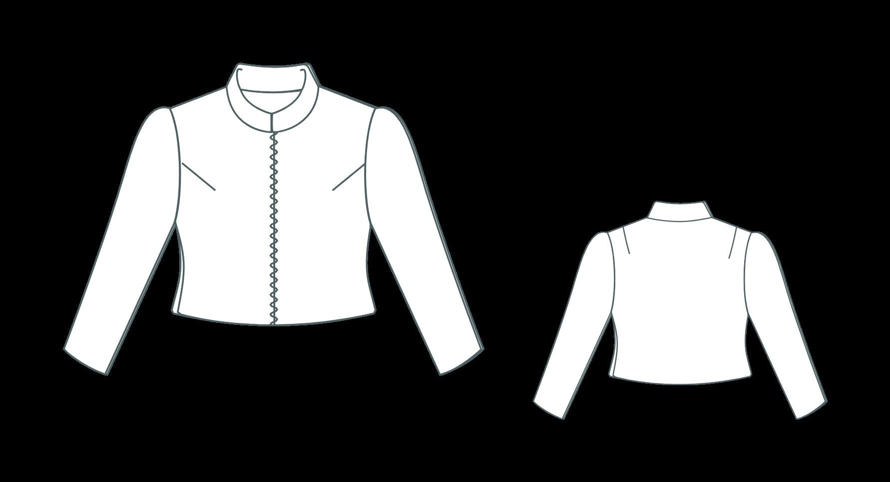Mandarin Neck Front Zipper Jacket Sewing Pattern,Long Sleeve Crop Top,Women's Jacket,Zipper Jacket,Puff Sleeve Crop Top