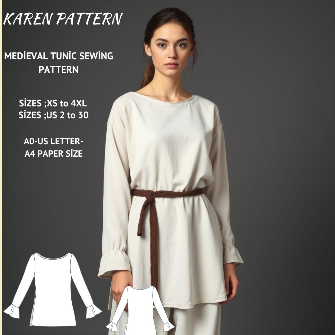 Medieval Tunic Sewing Pattern:Bohemian Cosplay (XS-4XL) (PDF Pattern)