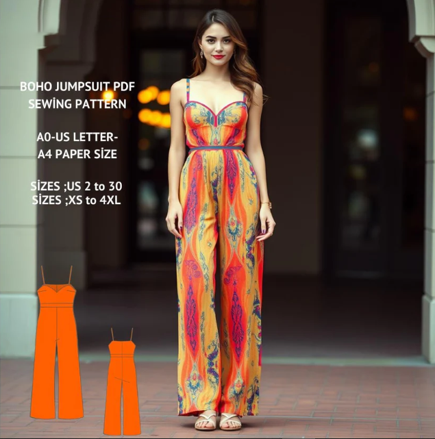 Women's Boho Wide Leg Jumpsuit Sewing Pattern (XS-4XL) (PDF Pattern)